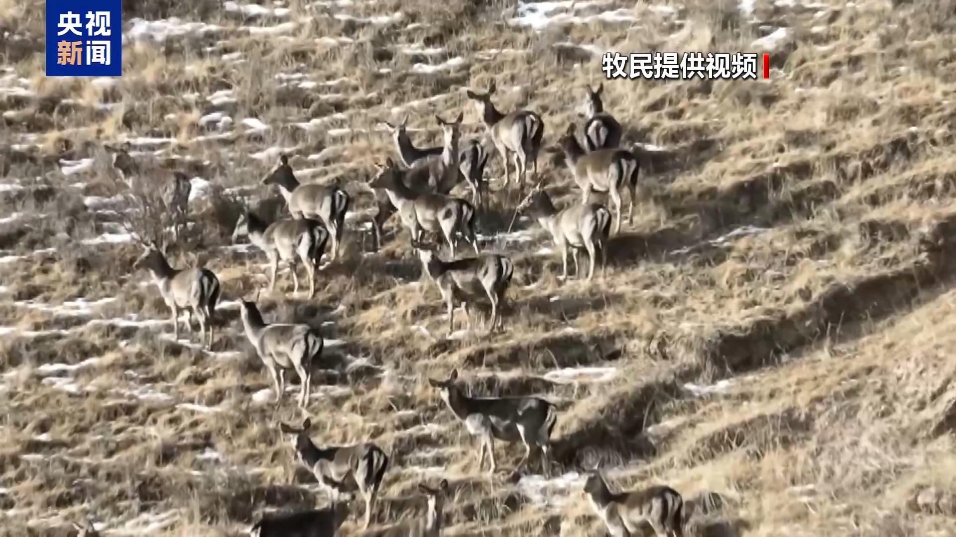 肃南裕固族自治县马蹄藏族乡牧民 尕满草:祁连山不光是我们的家,它也是野生动物们的家。因为保护得好,现在我们下山借牧了,它们繁殖得越来越多,它们要从树林里山上下来找吃的,经常翻越围栏的时候别在那儿了。这是鹿,围栏已经勒到它肚子上了。这个是妈妈,有鹿宝宝,它们万一受伤了,没人看,天这么冷,它们就会被冻死饿死。隔三岔五我们会上来看一下。