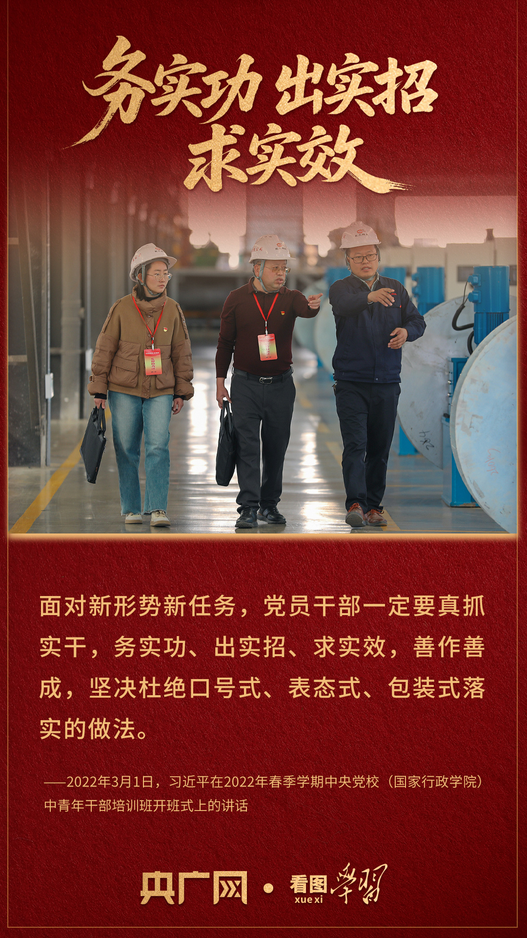 大道至简,实干为要。总书记多次强调“实干”的重要性,谆谆话语生动诠释我们党实事求是、求真务实的工作作风,揭示出政绩与实干内在统一、相辅相成的关系。《看图学习》与您一同领悟!
