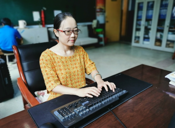 “停课不停学”一声令下,王老师马上着手准备尝试线上教学,却发现网络上有关特殊教育康复的课程极为匮乏,也不适合自己班学生。录屏、剪辑一步步从头学起,查网络、下软件、向年轻同事求教,边试边问边学,有时为了搞明白一个小问题,要反复琢磨到深夜。慢慢地,终于可以录成能完整表达教学意图的微课,有成功的欣喜,也有get到新技能的快乐。在熟练掌握相关技巧后,王老师在年级组开展线上教研,对教研组每位教师任课的教学内容、教学目标、教学实施方法提出建议,同时针对微课录制技能进行了组内培训。